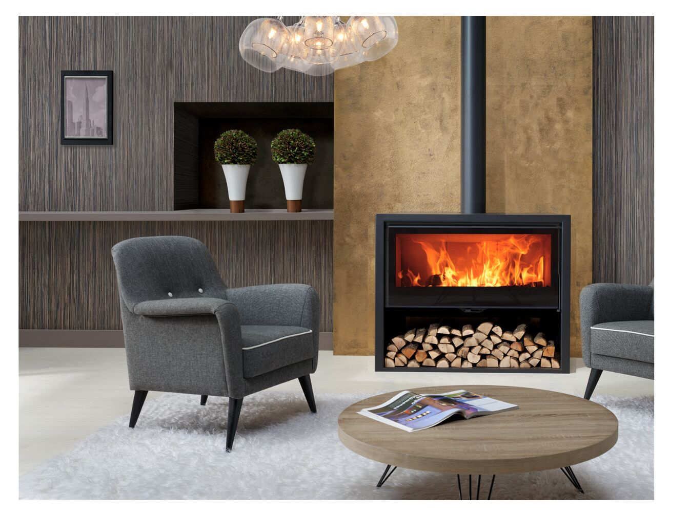 Poêle à bois en fonte pouvant accueillir des bûches de 60 cm de long