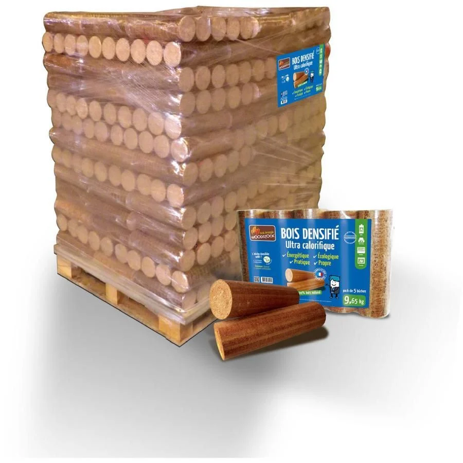 Bûches compressées – Palette de 104 paquets de 5 bûches – WOODSTOCK